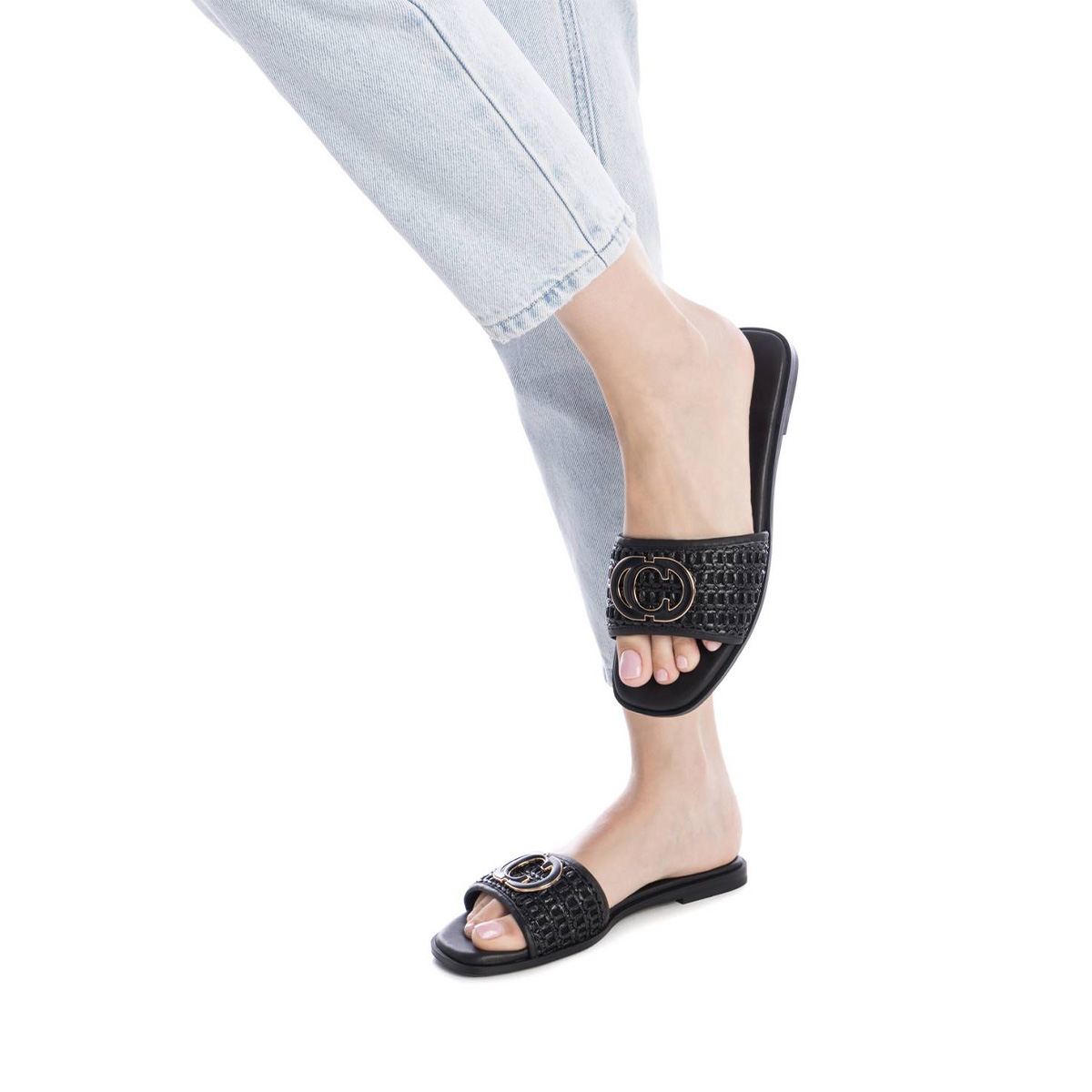 Carmela Γυναικεία Flat Παντόφλα Μαύρο | Woven Leather Design | Metallic Detail