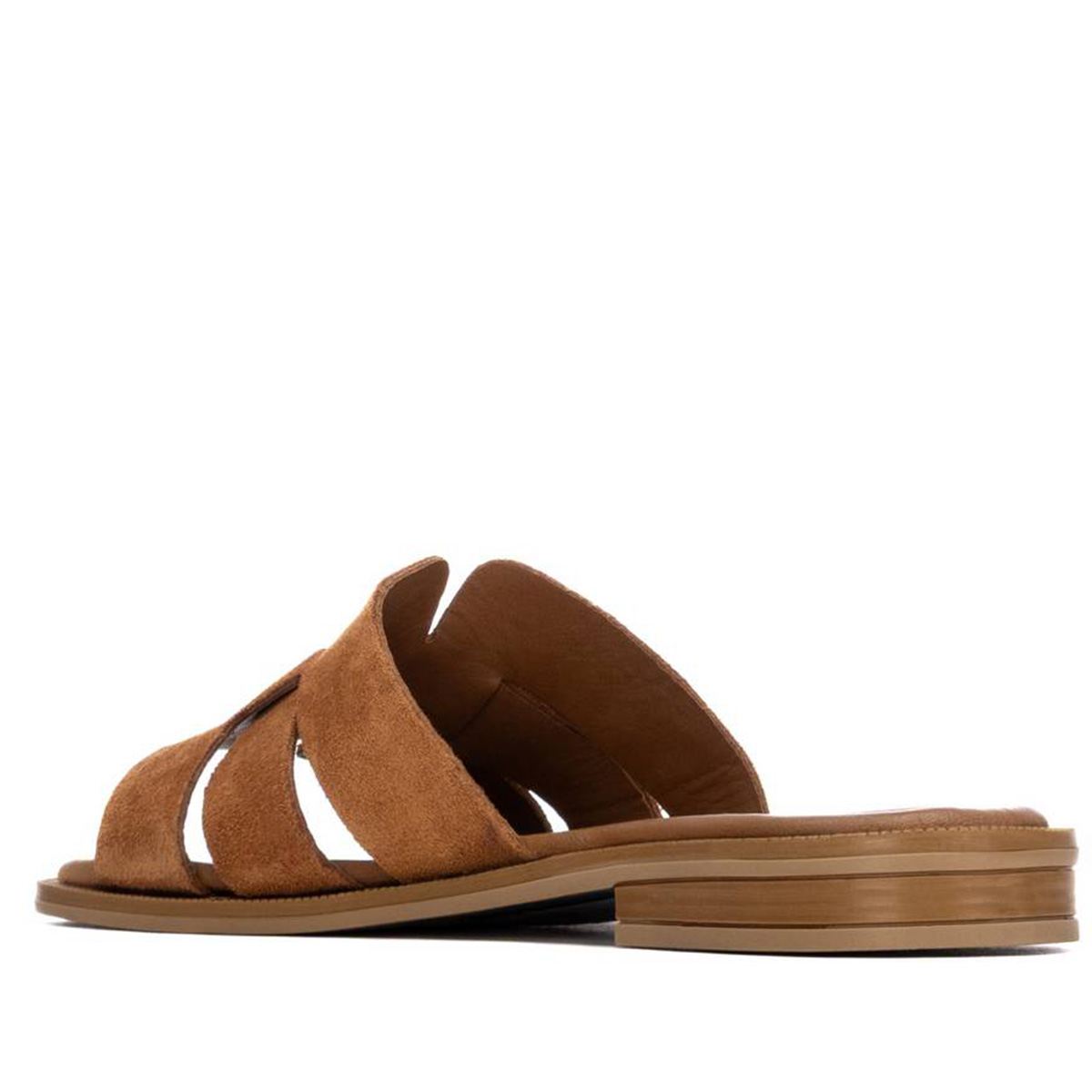 Carmela Γυναικεία Suede Flat Παντόφλα Camel | H-Strap Design | Metallic Logo