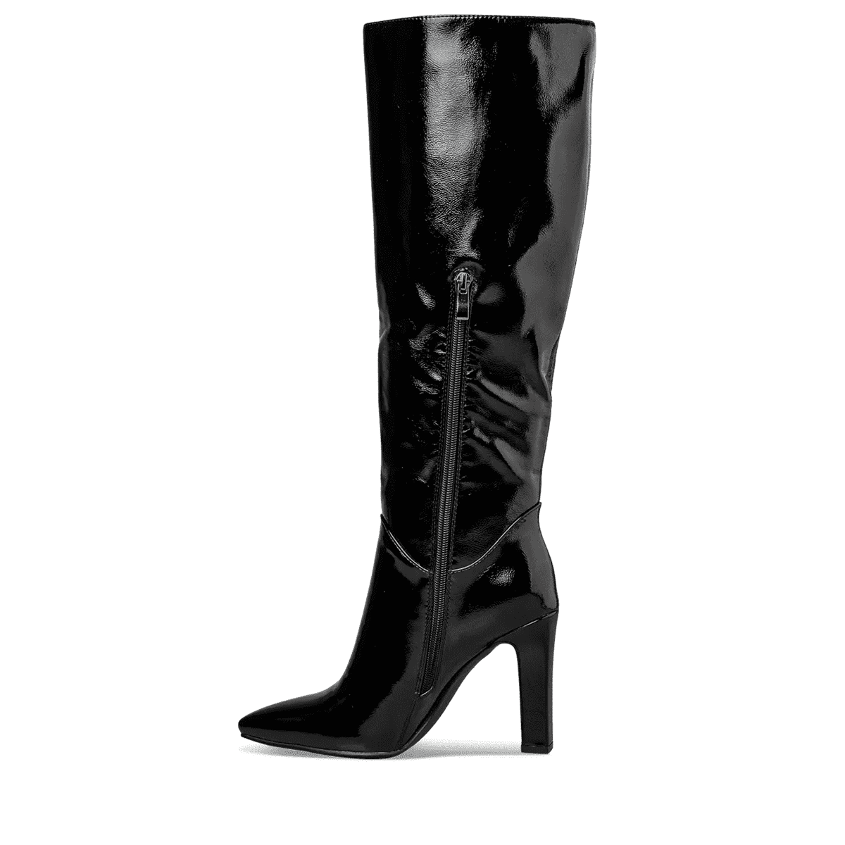Envie Γυναικεία Μαύρη Λουστρίνι Μπότα Ψηλή με Τακούνι