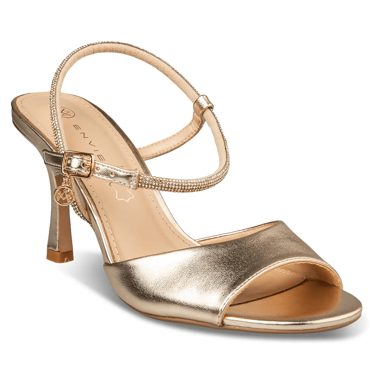 Envie Γυναικεία Βραδινά Πέδιλα – Χρυσό | Metallic Gold | Strass Ankle Strap