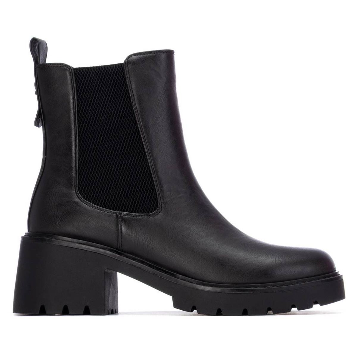 Γυναικεία Chelsea μποτάκια Refresh σε μαύρο χρώμα, με χοντρό τετράγωνο τακούνι και αντιολισθητική τρακτερωτή σόλα για άνετο και σταθερό περπάτημα. Διαθέτουν ελαστικά πλαϊνά για εύκολη εφαρμογή και συνδυάζουν άνεση με μοντέρνο στυλ. Ένα μποτάκι που φοριέται εύκολα από το πρωί ως το βράδυ, αναβαθμίζοντας κάθε casual ή chic εμφάνιση.