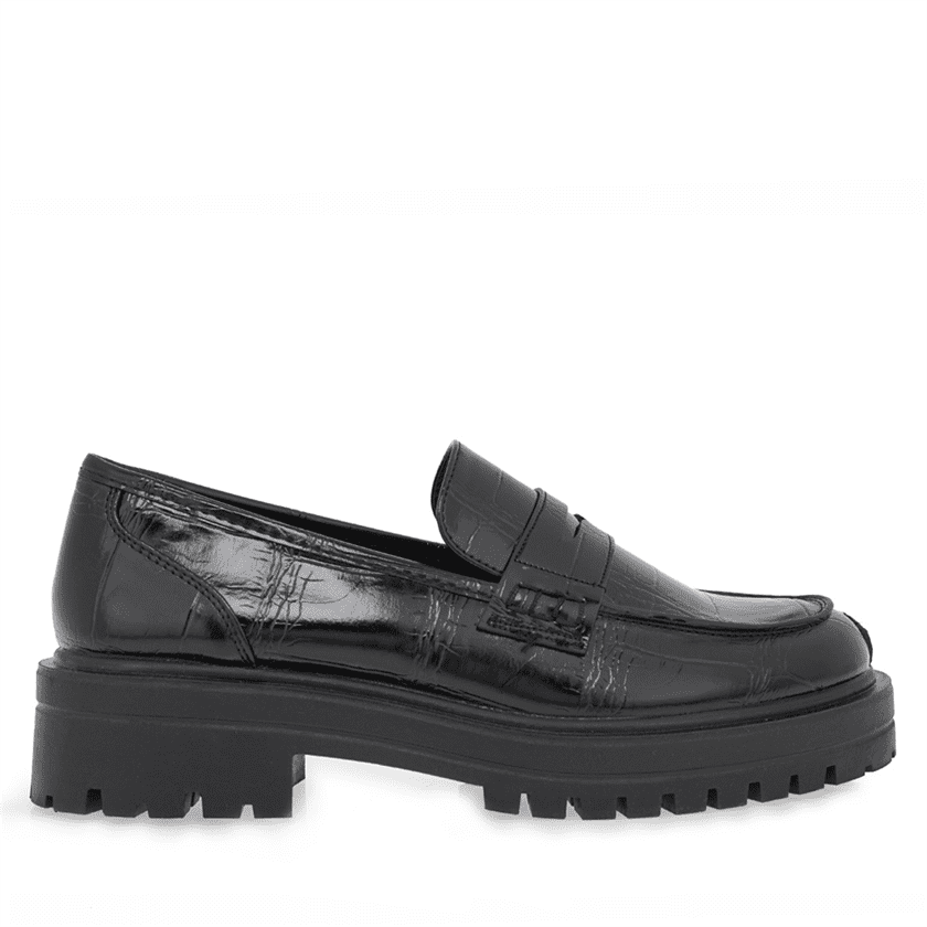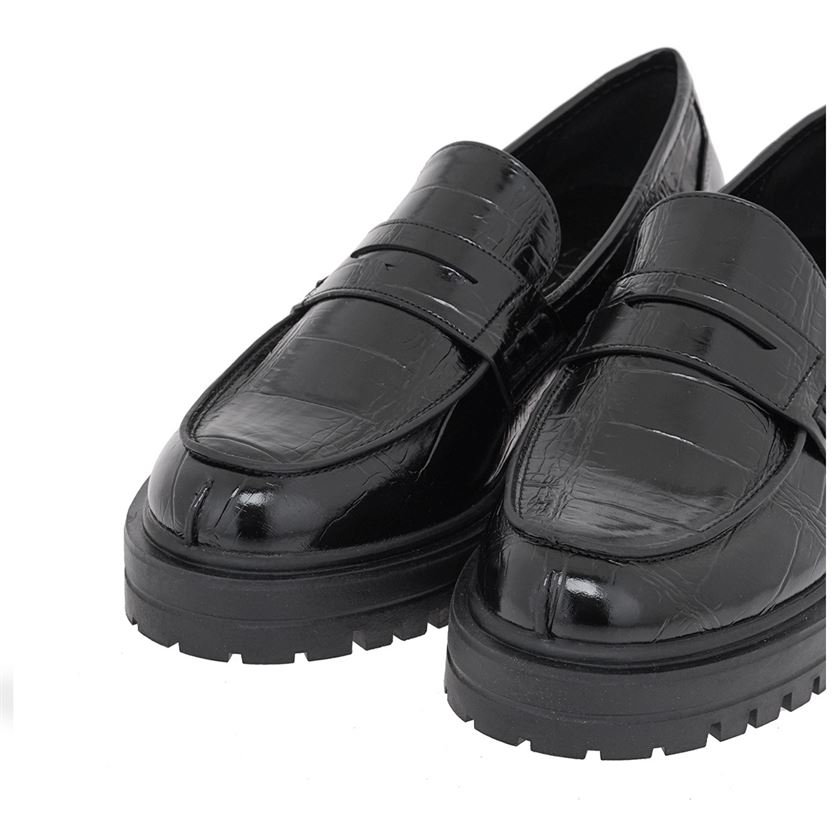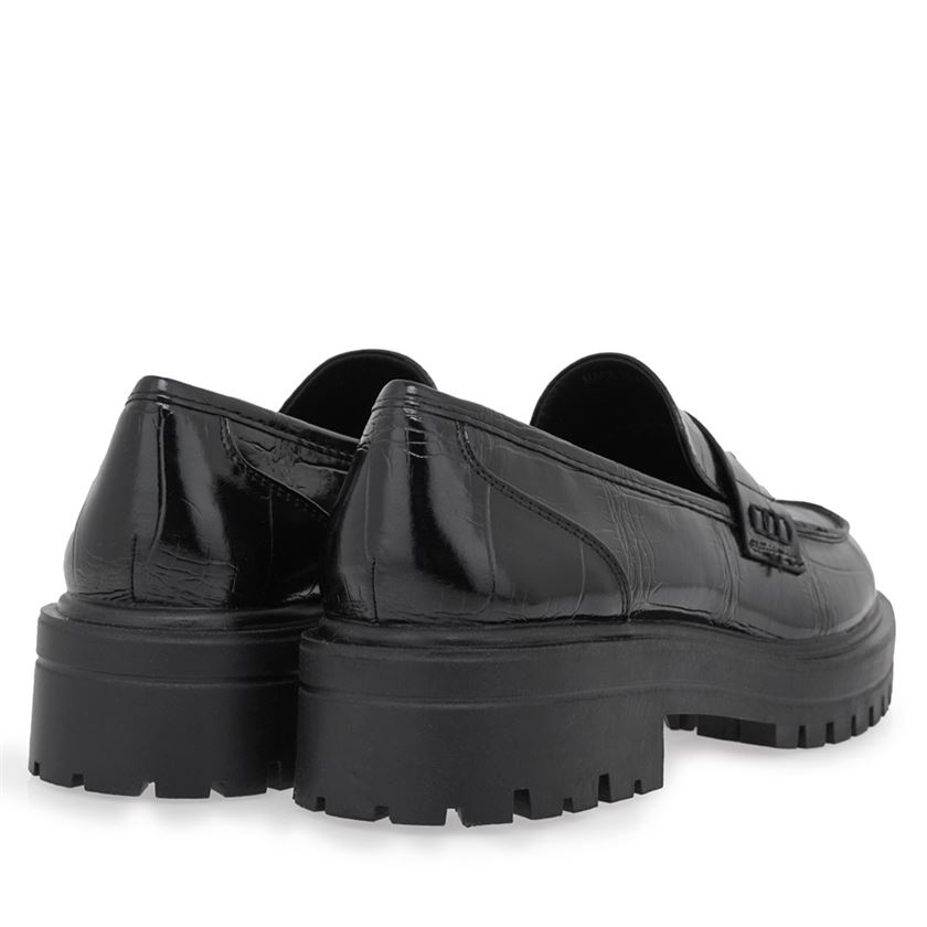Seven Γυναικεία Μαύρα Loafers Croco με Chunky Σόλα